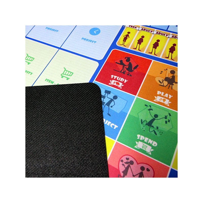Fatigué des panneaux de carton et vous voulez quelque chose de plus engageant? Nous vous entendons, c’est pourquoi The Pursuit of Happiness Game Mat est maintenant disponible en précommande! Obtenez toutes vos cartes d’extension et de jeu de base en un seul, car sa conception contient les cartes Expériences et Communauté et bien sûr les machines à sous de jeu de base. Les surfaces ne sont plus brillantes, avec son fond antidérapant, vous n’aurez plus à vous soucier qu’il soit renversé ou déplacé pendant le jeu.